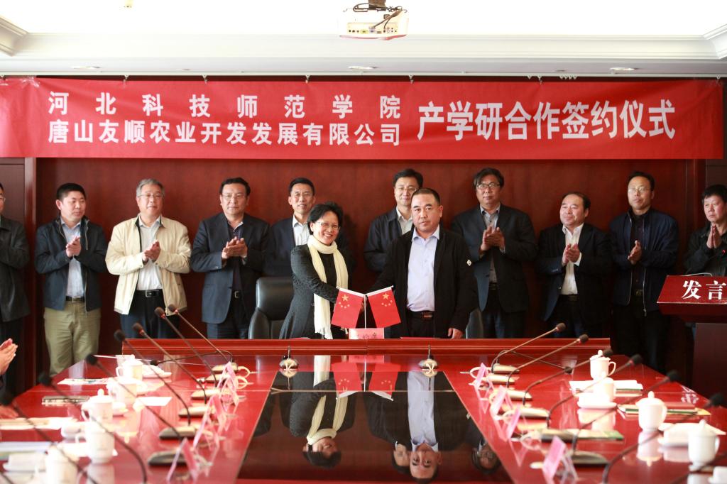 2017年4月22日上午,完美网页版与唐山友顺农业开发发展有限公司校企合作签约暨授牌仪式在唐山市滦县举行。校长王同坤、副校长杨越冬,滦县县委书记许晓娟、县长戚永和、市林业局局长董秀峰、县委常委农工委书记副县长张雪峰、县委常委县委办主任高语明出席活动,县农业办、林业局及九百户镇主要负责同志全程陪同。完美网页版园艺科技学院、生命科技学院、动物科技学院、党委宣传部、分析测试中心、科研处负责同志参加了签约暨授牌仪式。