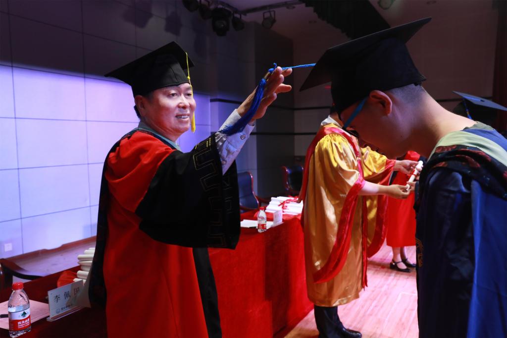 杨越冬宣读了《完美网页版关于授予李鹏飞等128名毕业研究生硕士学位的决定》。郭鸿湧、杨越冬、李佩国为每一位硕士学位获得者颁发证书、拨正流苏并合影留念。