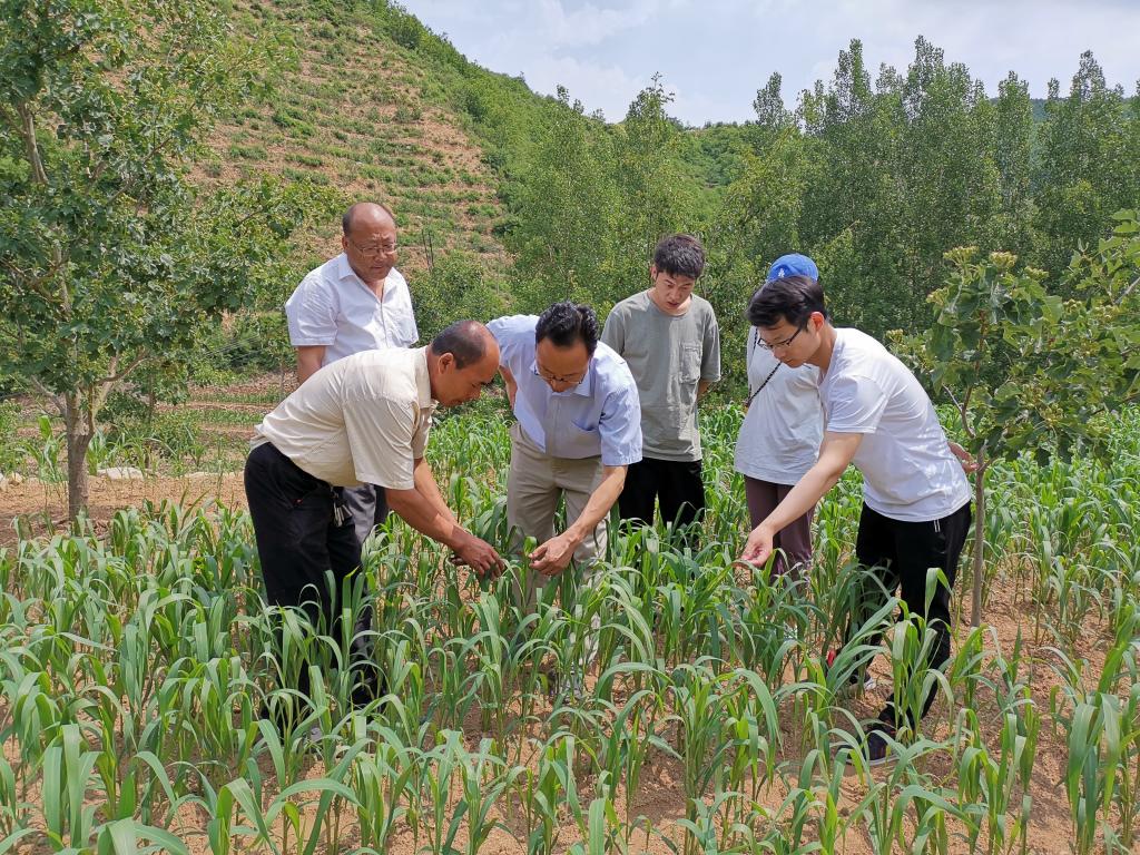 林小虎博士来陈台子村指导谷子生长情况