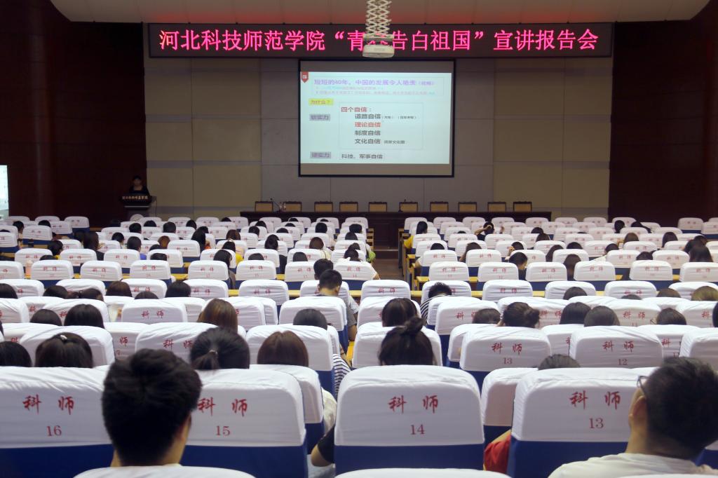 2019年9月5日下午,完美网页版在秦皇岛校区学术交流中心召开“青春告白祖国”宣讲报告会,思政部王丽玲老师作题为“百年未有之大变局下的青年使命”的报告,300余名学生现场聆听。