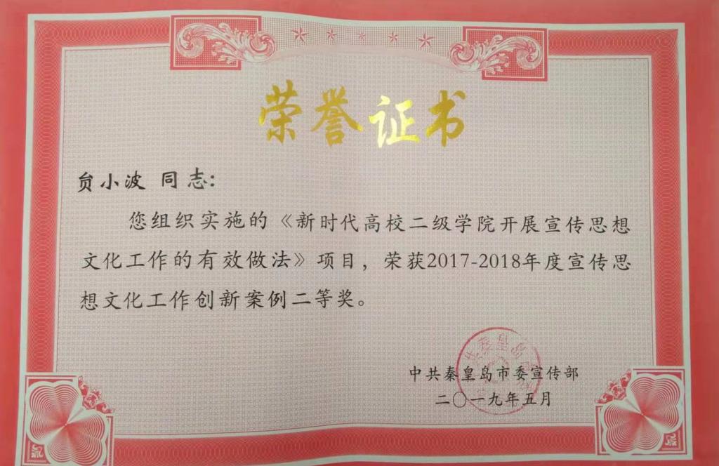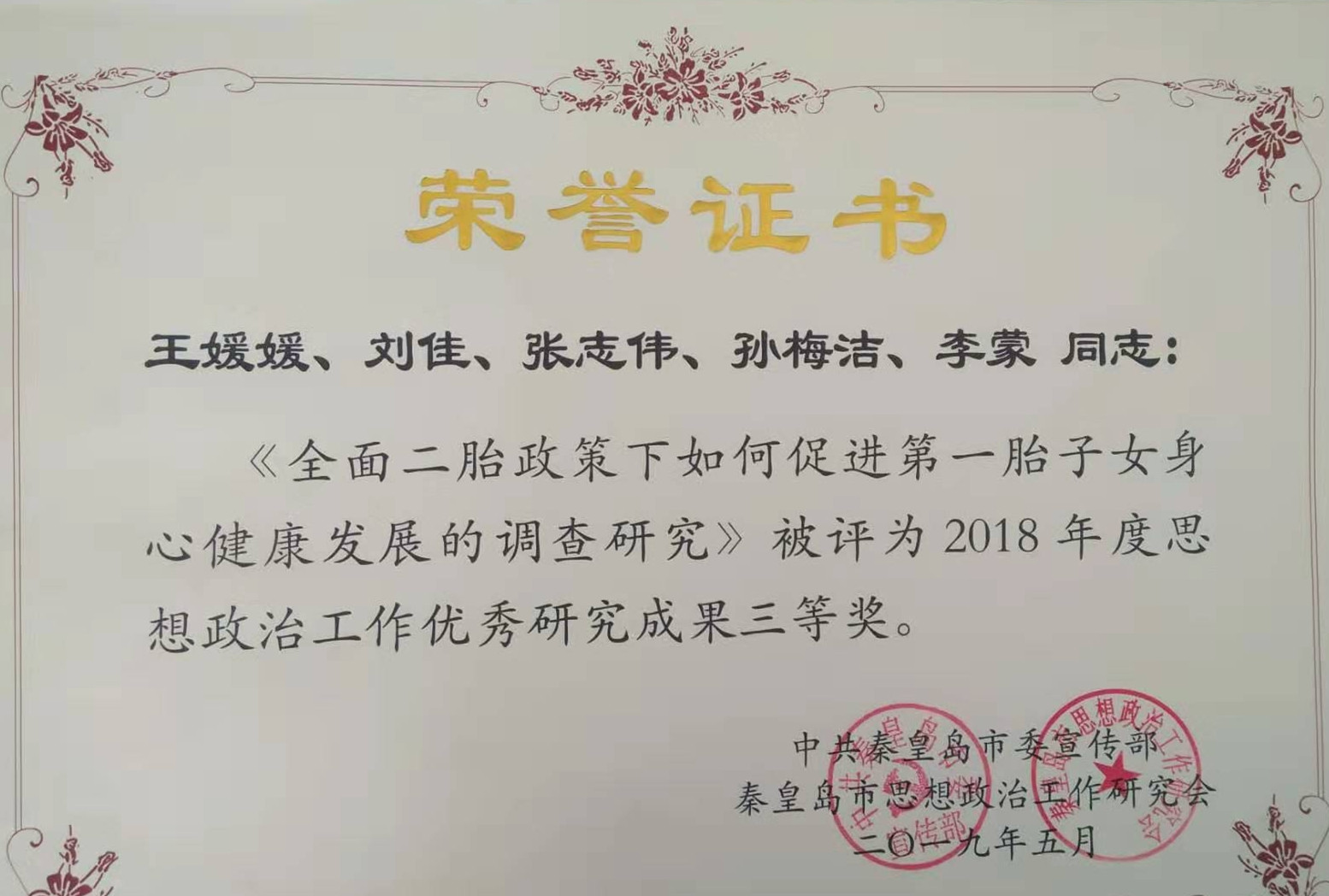 日前,市委宣传部公布了2018年度市级思想政治工作先进集体、研究成果和2017——2018年度宣传思想文化创新案例评选结果。完美网页版农学与生物科技学院被评为思想政治工作先进集体;化学工程学院王媛媛组织的《全面二胎政策下如何促进第一胎子女身心健康发展的调查研究》获思政研究成果三等奖;农学与生物科技学院贠小波组织实施的《新时代高校二级学院开展宣传思想文化工作的有效做法》获宣传思想文化工作创新案例二等奖,党委组织部于明来组织实施的《创建村级党校引领脱贫攻坚的探索与实践》获三等奖。(编辑:孙艳敏   审核:唐代清)