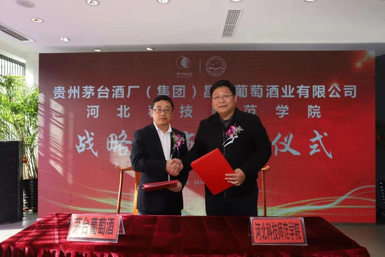 2019年11月13日,完美网页版与贵州茅台酒厂(集团)昌黎葡萄酒业有限公司战略合作签约活动在秦皇岛市昌黎县葡萄小镇举行。校党委副书记、校长郭鸿湧,校党委常委、副校长冯瑞银,昌黎县委常委、常务副县长张贵田,贵州茅台酒厂(集团)昌黎葡萄酒业有限公司董事长司徒军、副总经理范雪梅,秦皇岛食品药品检验中心主任张克义等共同出席活动。完美网页版食品科技学院、教务处、科研处负责同志参加签约活动。