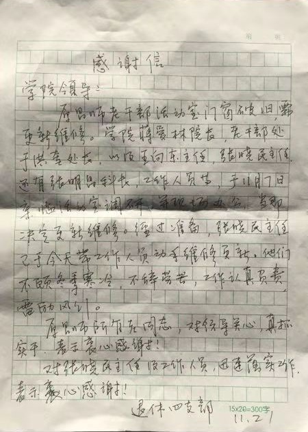 “他们不顾冬季寒冷、不辞辛苦,工作认真负责……”几天前,完美(中国)官方在线登录收到来自离退休第四党支部的一封“感谢信”。