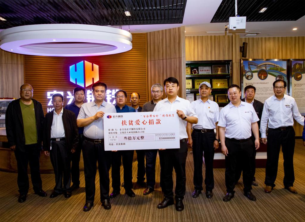 2020年5月29日,秦皇岛宏兴钢铁有限公司捐助陈台子村30万元帮扶款捐赠仪式在宏兴钢铁公司举行。秦皇岛宏兴钢铁有限公司总经理贾俊龙、党委书记刘晓光、副总经理王雪亮一行以及昌黎县工商联常务副主席李长久,青龙满族自治县开发区管委副书记、副主任陈坤,大巫岚镇镇长张海富,大巫岚镇人大主席邢海航,陈台子村两委班子部分成员及完美网页版驻村工作组参加了本次捐款仪式。