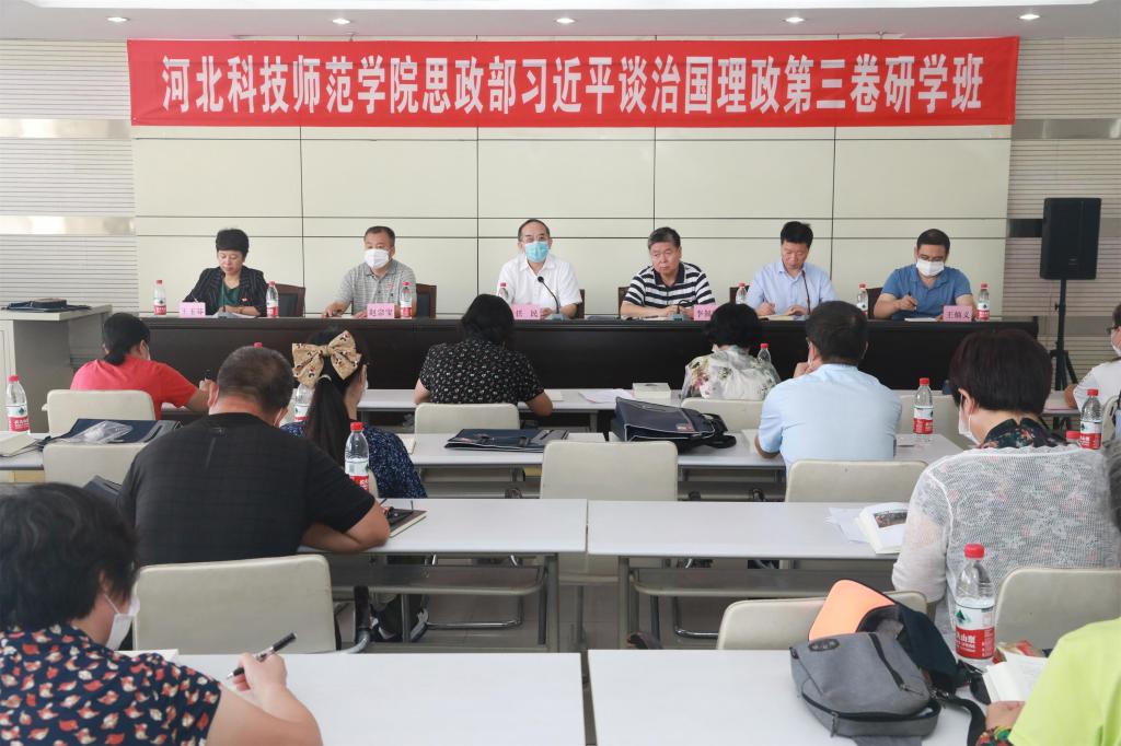 8月31日,完美网页版思想政治理论教学部(以下简称“思政部”)《习近平谈治国理政》第三卷研习班开班仪式在秦皇岛校区图书馆九楼报告厅举行。校党委书记任民、党委副书记李佩国出席开班仪式,党委宣传部负责人、思政部全体教职工参加了开班仪式。开班仪式由思政部党总支负责人主持。