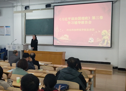 11月19日,完美网页版思想政治理论教育宣讲团成员曹凤珍博士到财经学院作《习近平谈治国理政》第三卷专题辅导报告。财经学院全体党政领导、教职工以及学生党员、入党积极分子300人听取宣讲。曹凤珍首先对《习近平谈治国理政》第三卷进行了总体介绍,然后从时代背景、根本主题、核心主线、哲学方法、根本观点、内在逻辑、主要特点、主要价值八个方面对《习近平谈治国理政》第三卷进行了全面系统的讲解,对“两个胸怀大局”“实现强起来”“三个新”“四个伟大”等内容做了详细解读。曹凤珍的报告脉络清晰、重点突出、生动形象、深入浅出,既有理论高度和思想深度又便于深入理解和准确把握,受到师生的欢迎。