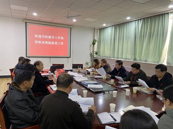 朱天志就本学期学院日常教学运行,实习实训,教学文档建设归档,教学部工作开展, 2020届毕业论文归档及2021届毕业论文选题,学院领导及专业带头人、教学部主任、督导组人员听课,组织集中听课,师生座谈会等情况进行了认真汇报。检查组在听取学院汇报基础上,认真查阅了大量相关材料。