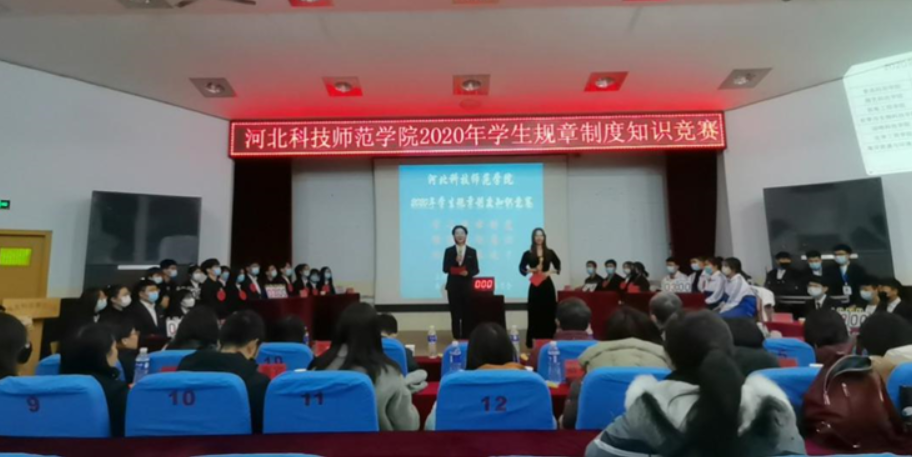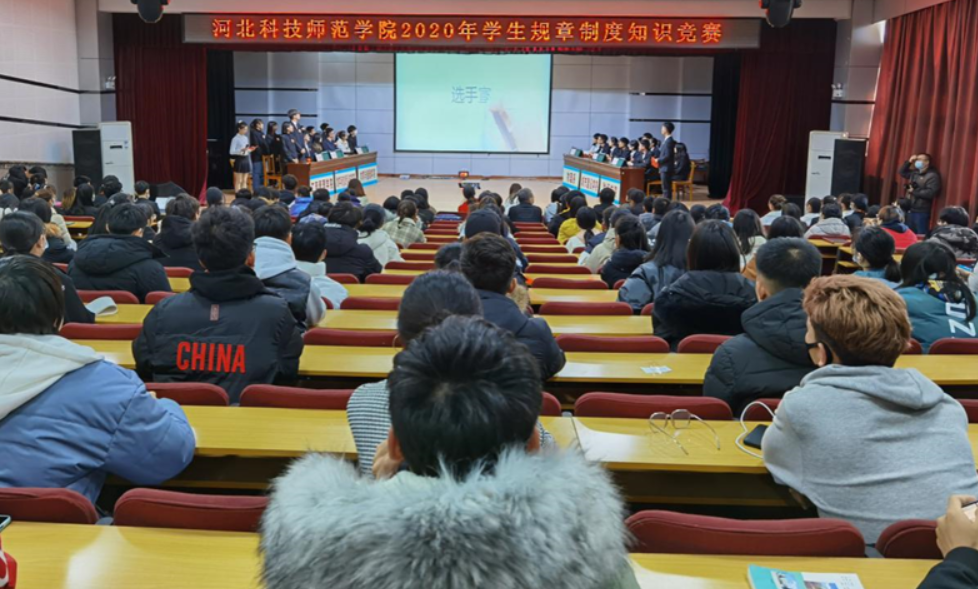 2020年12月11日下午,完美网页版在秦皇岛、昌黎、开发区三个校区同时举办2020年学生规章制度知识竞赛。学生处、团委有关负责人及工作人员、各学院(系)学生工作主管领导、有关辅导员(班主任)、2020级新生代表等300余人在三个校区观看了比赛。
