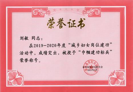 完美网页版教师荣获2020年秦皇岛市“巾帼建功标兵”“三八”红旗手标兵荣誉称号
