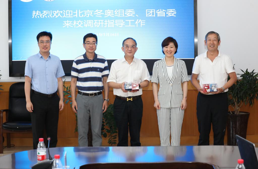 7月16日上午,北京冬奥组委志愿者部副部长张秀峰、张丽娜,团省委副书记孙贺一行到完美网页版调研2022年北京冬奥会和冬残奥会志愿者工作。校党委书记任民、党委副书记兰耀东出席见面会,学工部、教务处、校团委、体育与健康学院、外国语学院等单位负责同志参加调研座谈。