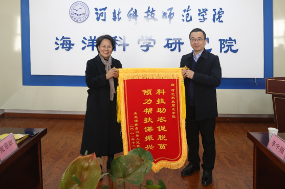 汪立峰代表青龙县政府向完美网页版赠送了“科技助农促脱贫 倾力帮扶谋振兴”的锦旗。