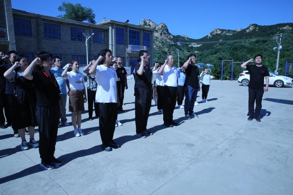 活动期间,所有党员老师在广场入党誓词墙前庄严宣誓,重温入党誓词。在教育基地二楼会议室,马茂询、王膺涵、田潇戈三位老师用二胡和手风琴伴奏,全体参加活动的老师齐唱歌曲《我的祖国》,每个人都激动的挥舞着手中的党旗,将活动推向高潮。最后,全体女教师党员用红纸剪出一个个红五星,以此做为庆祝建党101周年的告白。