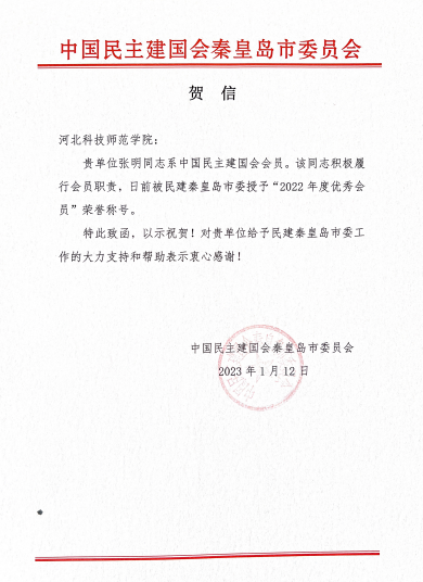 民建秦皇岛市委会给完美网页版发来贺信
