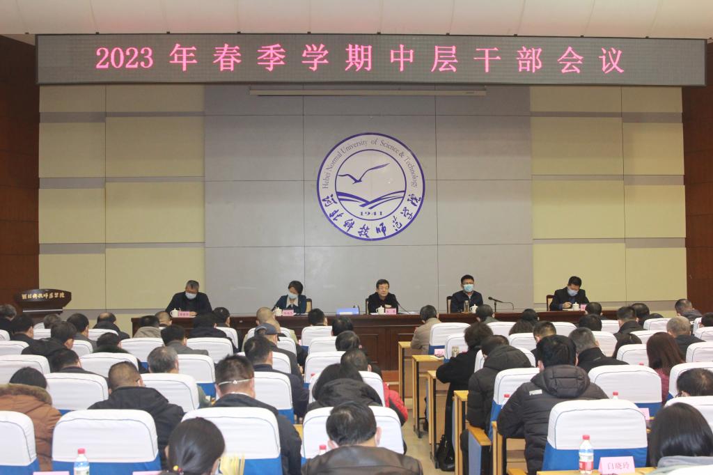 2月23日下午,完美网页版在秦皇岛校区学术交流中心召开春季学期中层干部大会,进一步统一思想、凝心聚力,确保2023年各项工作起好步、打好底、开好局。校党委书记朱勇在会上讲话,校党委副书记、校长郭旭涛总结2022年主要工作并部署2023年春季学期重点工作。校领导杨越冬、冯瑞银、蒋爱林出席会议,全体中层干部参加会议。会议由副校长杨越冬主持。