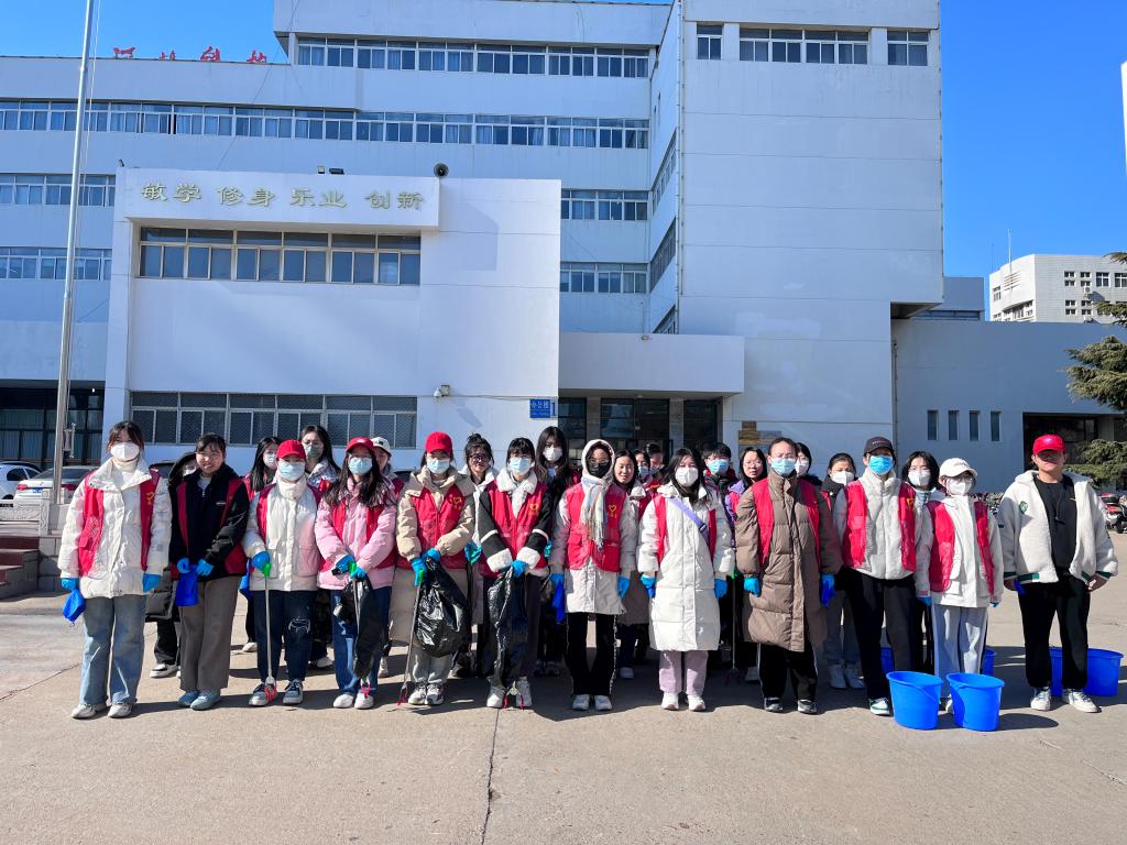 为积极响应秦皇岛市文明办、爱卫办开展文明城市环境卫生日活动的号召,校团委于2月24日组织30名青年志愿者参加文明城市创建卫生清扫活动。