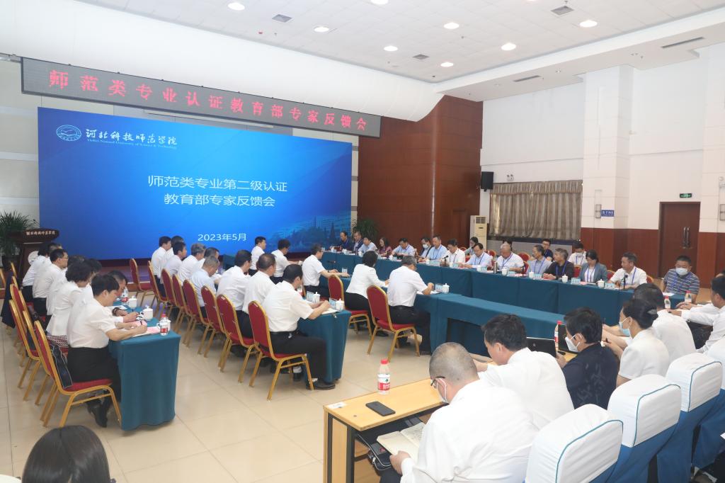 5月31日上午,完美网页版在秦皇岛校区学术交流中心召开师范类专业第二级认证教育部专家反馈会。专家组联合组长兼数学与应用数学专业专家组组长林松柏教授同小学教育专业、汉语言文学专业、化学专业、英语专业共五个师范类专业认证专家组全体成员,校领导朱勇、郭旭涛、杨越冬、冯瑞银、蒋爱林出席会议。各职能部门、教辅科研单位负责人,申报专业所在二级学院领导班子成员、专业带头人、任课教师,其他师范类专业所在院系负责人、专业带头人及相关教师,公共课院系负责人参加会议。会议由林松柏组长主持。