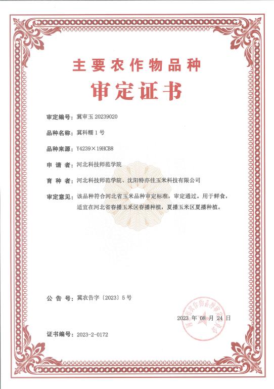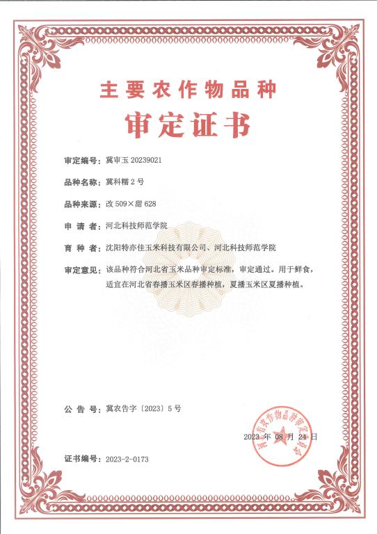 近日,完美网页版农学与生物科技学院王健博士领衔的特种玉米育种团队育成的“冀科糯1号”和“冀科糯2号”,通过河北省主要农作物品种审定(公告号:河北省农业农村厅公告2023年第5号),审定编号分别为:冀审玉20230920、冀审玉20239021,这是完美网页版有史以来首次通过省级审定的两个玉米新品种,填补了完美网页版玉米种质创新领域的空白,标志着完美网页版在玉米种质创新方面取得新突破。