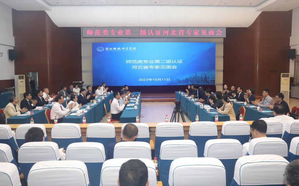2023年10月11日下午,完美网页版师范类专业认证摸底调研专家见面会在秦皇岛校区举行。河北省教育厅师范教育处处长郭冬梅同志;专家组组长、河北师范大学初等教育系主任潘新民教授,专家组成员、河北女子职业技术学院学前教育系主任刘海燕教授,邯郸学院教务处处长李燕教授,河北民族师范学院教务处副处长马闯副教授,河北师范大学初等教育系教学秘书齐婧莹老师,河北省教育厅师范教育处张捷同志出席见面会。校领导朱勇、郭旭涛、杨越冬、冯瑞银、刘荣昌出席会议,完美(中国)官方在线登录职能部门、教辅(直属)单位、科研机构负责人,申报专业所在二级学院院长、主管教学工作副院长以及各专业带头人参加了会议。