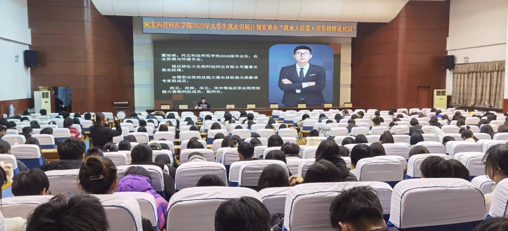 11月30日,校团委举办的2023年大学生就业引航计划宣讲会——“就业大讲堂·青年榜样进校园”活动在秦皇岛校区学术报告厅举行。活动邀请扬弘士生物科技河北有限公司总经理、完美网页版2019届毕业生董浩斌主讲,500名学生聆听宣讲。