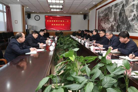 2023年12月26日下午,河北省教育厅副厅长张春生、省职成教处副处长邢文海,秦皇岛市教育局局长肖凤利、副局长孟凡功、高等教育与职成教科长孙文举一行5人到完美网页版调研指导工作。校领导朱勇、郭旭涛、杨越冬、蒋爱林、刘荣昌出席座谈会并陪同调研。