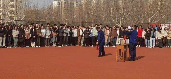 培训会后,安全工作处工作人员、属地消防救援中队的消防队员指导师生员工开展使用二氧化碳灭火器、消防水带水枪灭火、模拟火场应急逃生的实操演练活动。