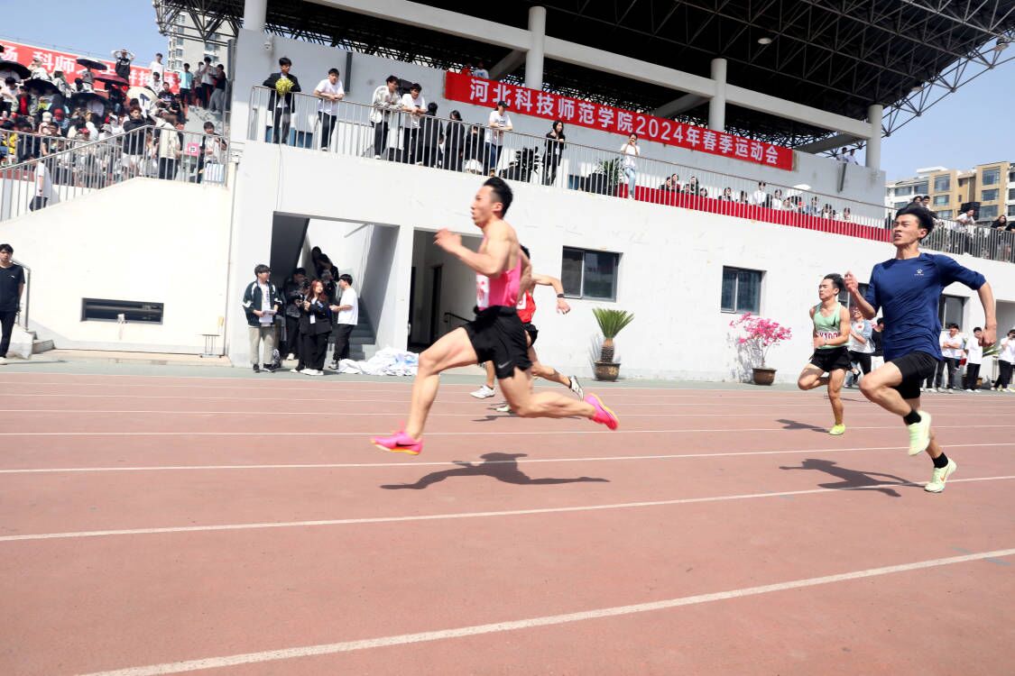 运动场上,运动员们奋力拼搏,展现出当代大学生的青春风采,创造出一个又一个可喜的成绩,收获着一份又一份成功的喜悦,其中体育与健康学院张家悦同学在男子乙组1500米比赛中,以4分16秒19的成绩打破保持42年之久的校运动会记录;在男子乙组5000米比赛中,以16分22秒26的成绩打破保持40年之久的校运动会记录。教工运动员在比赛项目中大显身手,展现出为人师表、积极进取的拼搏精神。观众席上的同学们摇旗呐喊,加油助威,为运动会营造热烈的竞赛氛围。