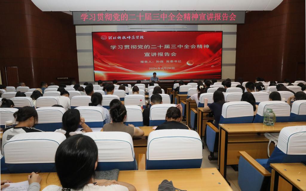 宣讲会上,孙政紧紧围绕学习贯彻党的二十届三中全会精神,聚焦习近平总书记对河北的关心厚爱,结合自身学习工作经历感受、结合对党的基础知识和师生关注的热点,从深刻认识党的二十届三中全会重要意义、深入学习领会习近平总书记在党的二十届三中全会上的重要讲话精神、全面准确理解《决定》提出的进一步全面深化改革重大举措、全力以赴抓好全会精神贯彻落实等方面,对全会精神进行了系统解读和深入阐释。