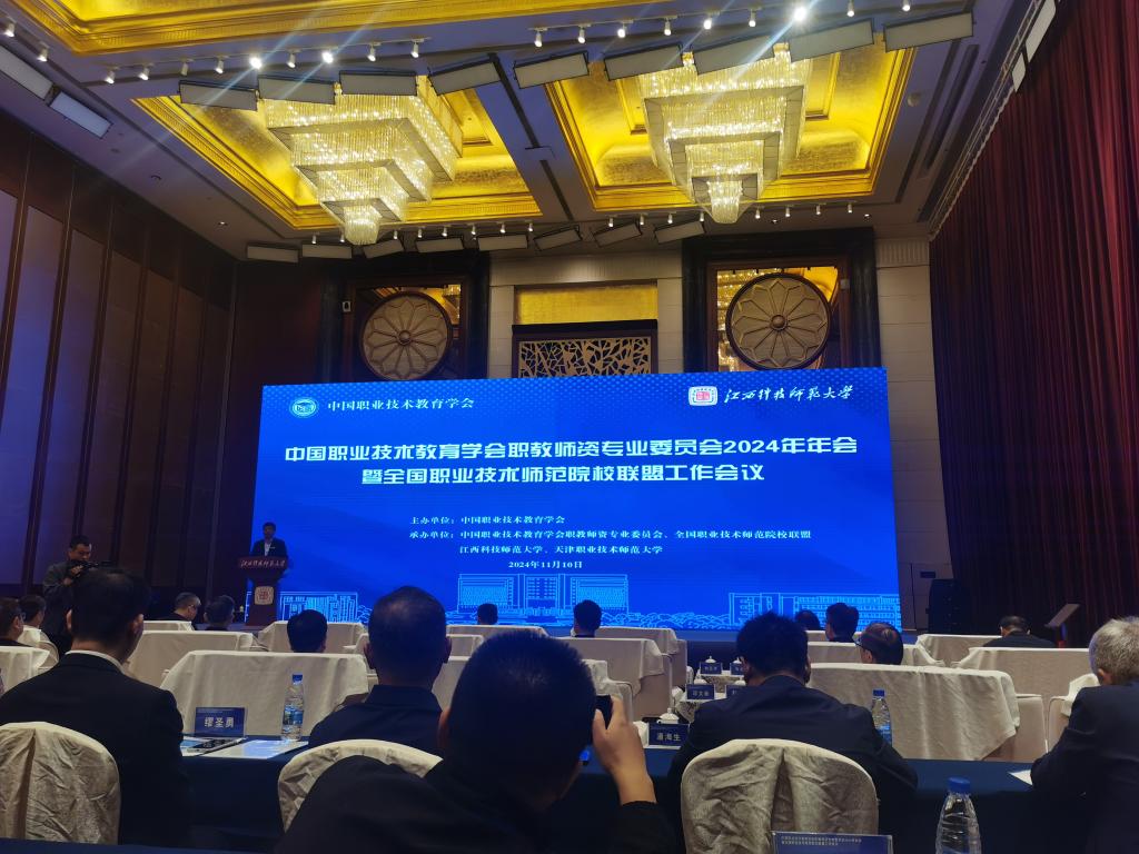 2024年11月9日至10日,中国职业技术教育学会职教师资专委会年会暨全国职业技术师范院校联盟工作会议在江西科技师范大学举行。完美网页版党委书记孙政、副校长杨越冬应邀出席会议,完美(中国)官方在线登录党办校办、研究生部、职业教育研究院主要负责同志参加会议。