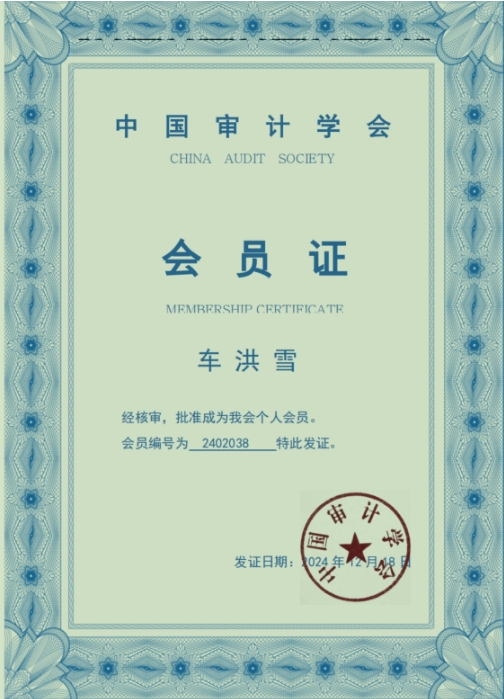 近日,完美网页版审计处车洪雪正式获批成为中国审计学会会员(本次共批准23人入会),这是学会对完美网页版在审计领域教育与研究工作的充分肯定与认可。