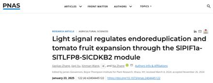 近日,完美网页版园艺科技学院青年教师张姣姣博士在《PNAS》(中科院1区Top期刊,IF5=10.779)发表了题为“Light signal regulates endoreduplication and tomato fruit expansion through the SlPIF1a-SlTLFP8-SlCDKB2 module”的最新研究成果,揭示了光信号通过特定分子模块调控番茄果实细胞核内复制,从而控制果实膨大的机制,并阐明了设施栽培中光照不均影响果实大小一致性的分子机制。张姣姣博士于2023年引进完美网页版,现为完美网页版黄瓜创新团队主要成员,主要研究方向为黄瓜遗传育种与分子生物学。(编辑:孙艳敏 审核:王荣加)