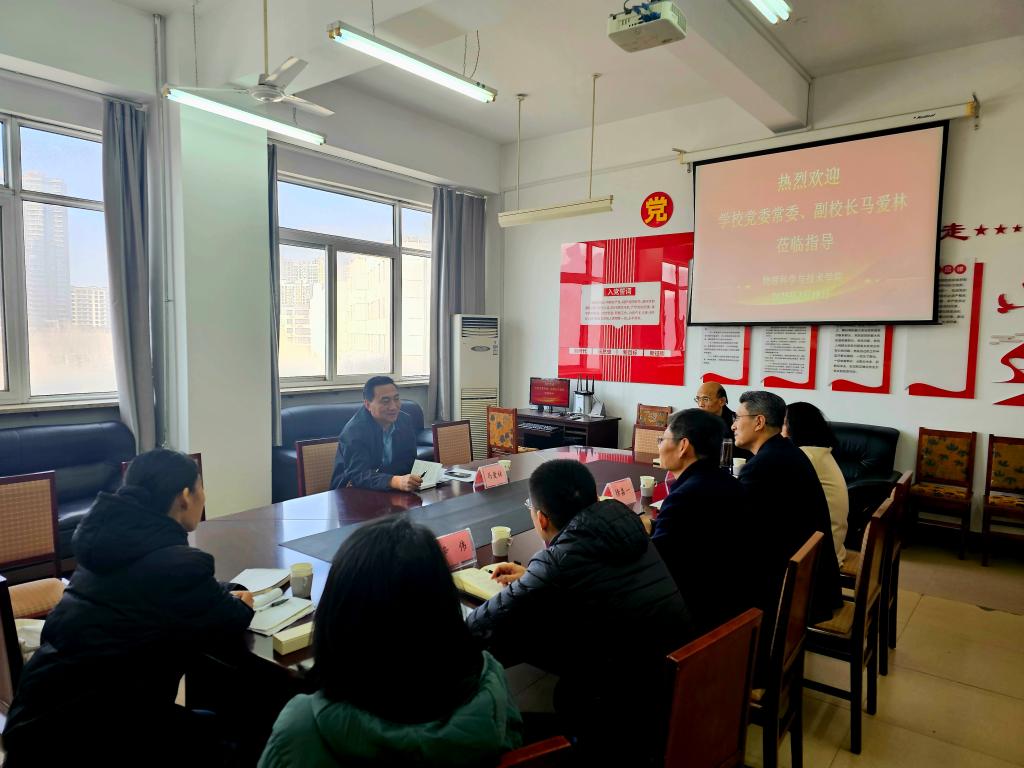 马爱林听取物理科学与技术学院情况汇报,对学院近年来取得的成绩给予充分肯定;对进一步加强基层党建、学科建设、师资队伍建设、人才培养等工作提出了指导性意见。