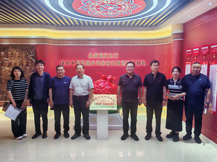 在揭牌仪式前,马克思主义学院副院长王炳义与北港镇河东村党支部书记陈波签署了共建“大思政课”实践教学基地协议。双方共同观看了河东村乡村振兴宣传片,围绕乡村振兴在北港河东的实践、铸牢中华民族共同体意识教育及校地合作开展社会实践活动等方面的内容进行深入交流。
