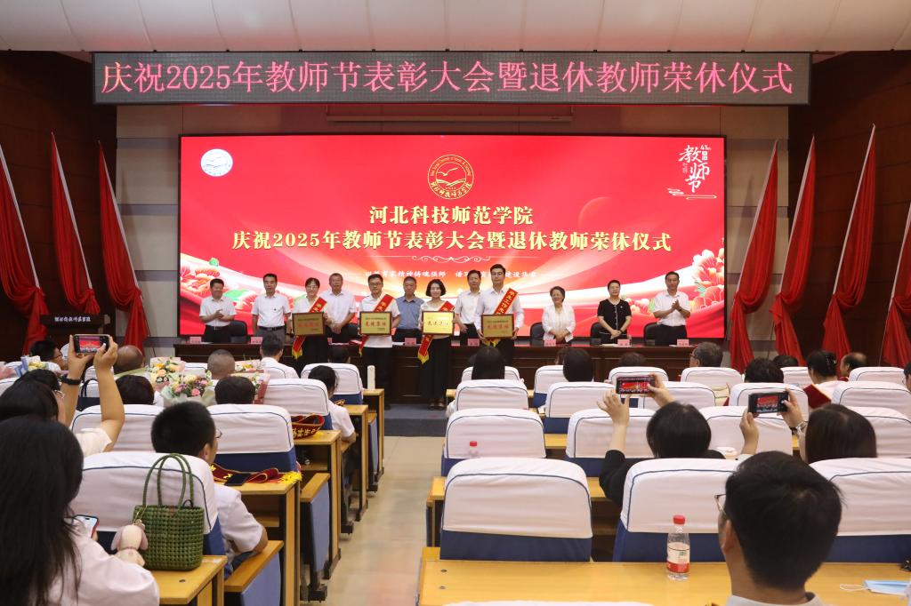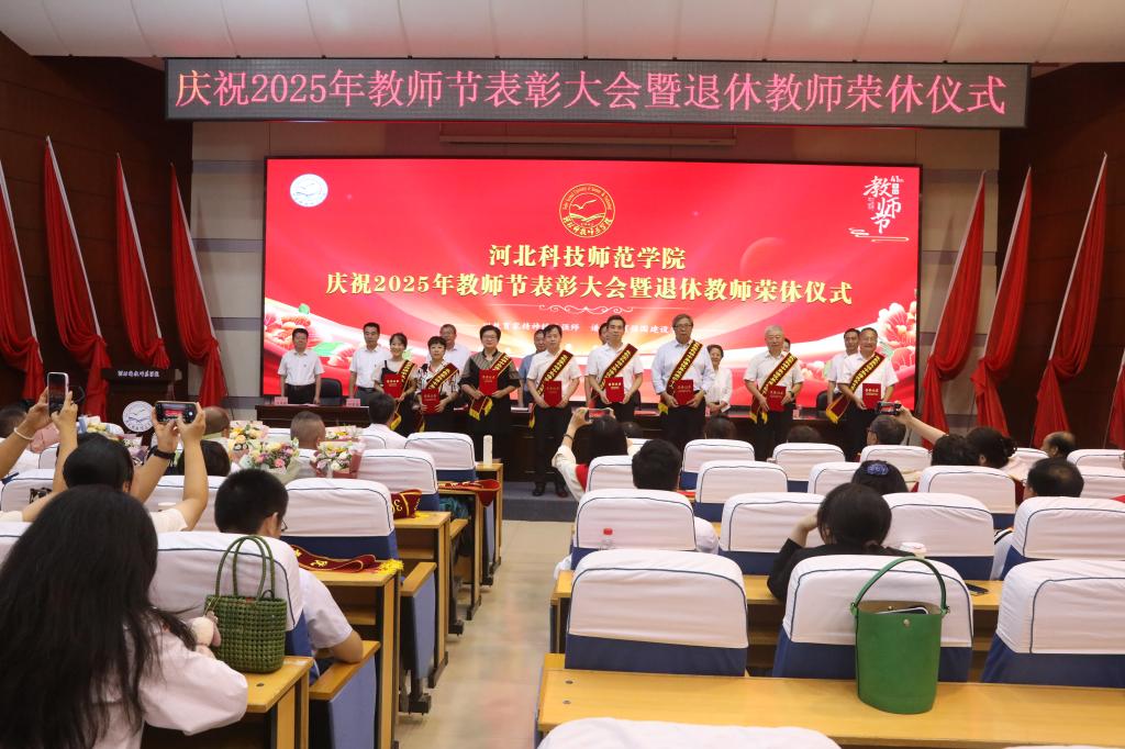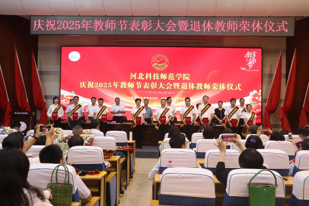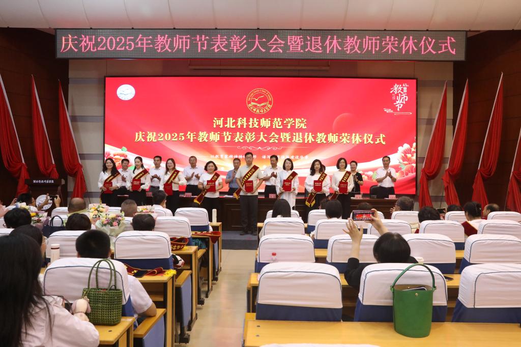 2025年9月10日下午,完美网页版在秦皇岛校区学术交流中心隆重举行庆祝教师节表彰大会暨退休教师荣休仪式。校领导孙政、王松、蒋爱林、杨越冬、冯瑞银、刘荣昌、郑新、马爱林与荣休教师、满30年教龄教师、受表彰教师、二级单位党政负责人、新引进教师、师生代表欢聚一堂,共同庆祝第41个教师节。大会由校党委常委、副校长冯瑞银主持。