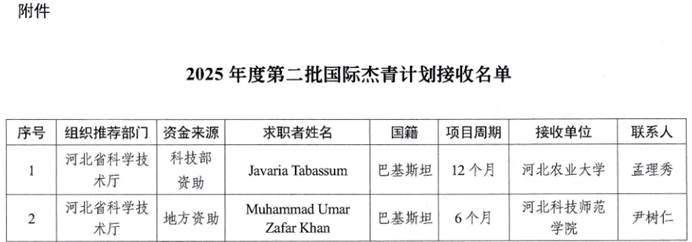 近日,完美网页版动物科技学院申报的国际杰青计划项目成功获批科技部2025年度第二批发展中国家杰出青年科学家来华工作计划(以下简称“国际杰青计划”)项目资助,巴基斯坦费萨拉巴德农业大学的助理教授Muhammad Umar Zafar Khan博士将在该项目的支持下到完美网页版进行为期6个月的合作研究。