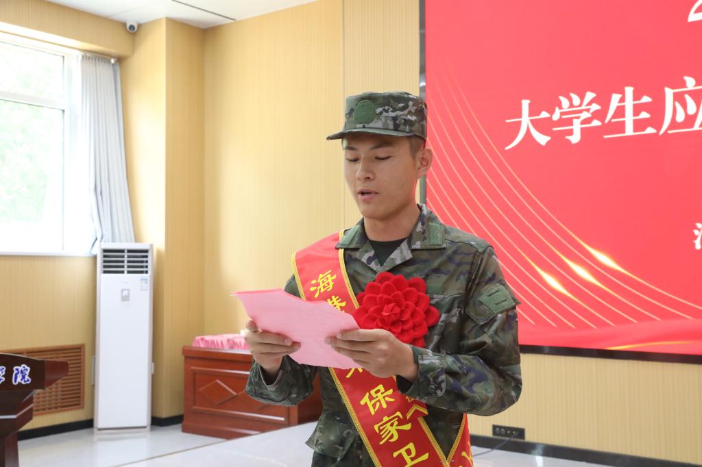 仪式在雄壮的《中华人民共和国国歌》中拉开序幕。嘹亮的旋律中,家国情怀与青春担当在会场激荡。校武装部部长赵彦军宣读定兵名单,这份名单承载着从自愿报名到体格检查、政治审查等层层筛选的严谨,更凝聚着青年学子“携笔从戎”的赤诚。
