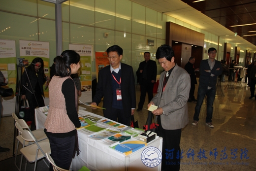 王同坤校长(左二)、东方阳处长(左三)出席汉语教材与文化读物展和总部各处咨询服务会