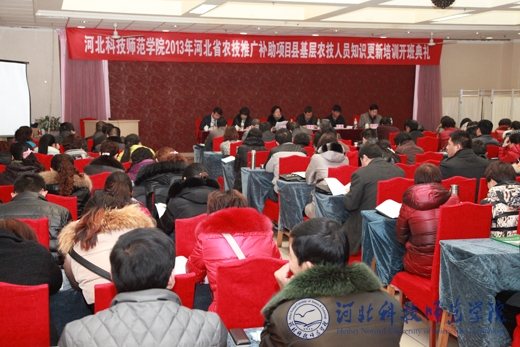 2013年12月7日上午,完美网页版承办的“2013年河北省农技推广补助项目——县基层农技人员知识更新培训重点班”开班典礼隆重举行。农业部科教司技术推广处处长王青立、河北省农业厅科教处处长刘魁、完美网页版副校长杨越冬、科研处处长闫立英、继续教育学院院长赵宝柱、继续教育学院党委书记贾利田出席了开班典礼。典礼由赵宝柱院长主持。