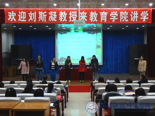 刘斯凝老师通过现场表演和师生互动,说明了幼儿故事讲述的基本要求,演示了幼儿故事讲述中的技巧,展示了语言和形体动作的结合在促进儿童语言表达、想象与美感体验的作用。参加报告的学生情绪高昂,活动积极,充分感知了特级教师的教学风采。这次报告是教育学院开展“实践取向本科层次学前教师培养模式”教学活动的组成部分。(编辑:孙艳敏   审稿:赵建平)