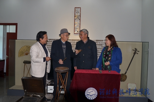 2013年10月25日,校党委副书记宋绍富,艺术学院副院长程学勇、声乐教学部副主任崔琳一行三人来到唐山市乐亭县,对国家级非物质文化遗产项目《乐亭大鼓》《乐亭皮影》进行了实地考察调研。在乐亭县委常委、宣传部长安爱军,文广新局局长陈佩林,中国艺术家协会会员、唐山市民间艺术协会副主席何宗禹等的陪同下,参观了《乐亭大鼓》、《乐亭皮影》展室并详细听取了两个“非遗“项目的起源、发展与传承。