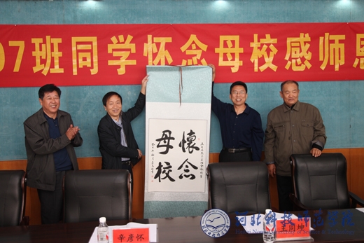张文炳校友向完美(中国)官方在线登录领导介绍了农307班部分校友毕业后的工作历程和工作成绩,胡全忠校友代表农307班同学做了《向母校祝福,向母亲致敬》的书面汇报,李春林校友代表农307班同学向完美(中国)官方在线登录及恩师赠送了自己的书法作品,对母校表达了无限祝福之情。