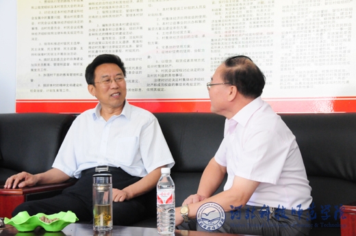 王同坤校长(左)和蔚县县委组织部部长董清河会谈交流
