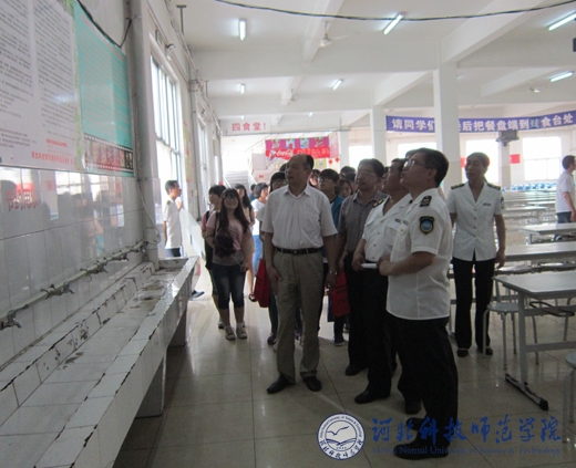 郭国维副校长(前排左一)在食堂内部参观