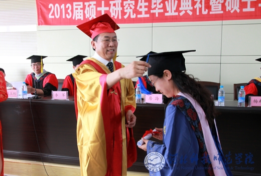 王同坤校长为硕士研究生颁发毕业证书并正冠拨苏