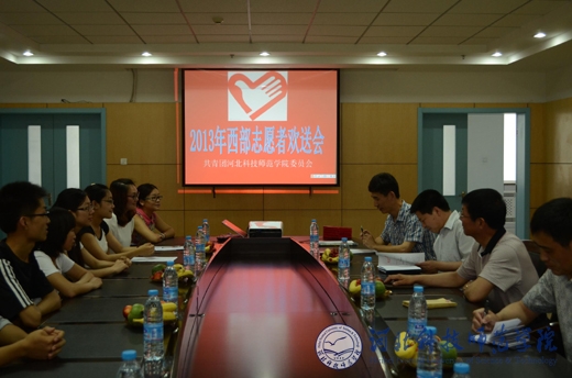6月25日下午,完美网页版2013年大学生志愿服务“西部计划”志愿者欢送会在秦皇岛校区举行。副校长张福喜,党委学工部部长、学生处处长冯瑞银,招生就业处处长刘朝晖,团委书记于海印出席会议。