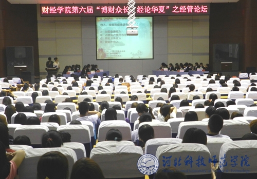 2013年5月30日晚,财经学院第六届经管论坛专业知识竞赛在秦皇岛校区如期举行。本届经管论坛的主题是“博财众长,经论华夏”。财经学院党委书记张建宗,院长贾圣武,副院长徐祗坤、杜茂宝和学工办辅导员老师参加了本次活动。        本次经管论坛专业知识竞赛历经一个多月,共有800多名学生参加,经过初选,最终有八个班级代表队参加本次决赛。知识竞赛由“卓尔不群”、“吹角连营”、“兵临城下”、“君临天下”四个环节组成。每个环节分为不同的加分模式,由各环节累计加分,直到最终环节决胜出名次。经过激烈角逐,保险实务专业代表队荣获一等奖,财务管理专业代表队和财务会计教育(统招)代表队荣获二等奖;财务会计教育(对口)代表队、电子商务专业代表队和国际经济与贸易专业(专科)代表队荣获三等奖;国际经济与贸易专业(本科)代表队和财务会计教育专业(审计)代表队荣获优秀奖。(编辑:孙艳敏       审稿:田 毅)