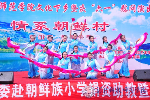 在六一儿童节来临之际,我们为朝鲜族小学生及父老乡亲们献上了一台别出声面的演出。演出在《好运来》的歌曲声中拉开了序幕,先后有琵琶齐奏《送你一支玫瑰花》,舞蹈《放风筝》、《掀起你的盖头来》,二胡齐奏《赛马》,魔术《伞》等15个节目组成,赢得了阵阵掌声和喝彩。最后,演出在歌曲《节日欢歌》中圆满落幕。(编辑:孙艳敏      审稿:田 毅)