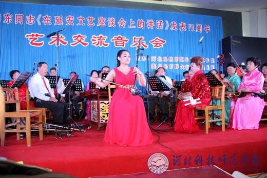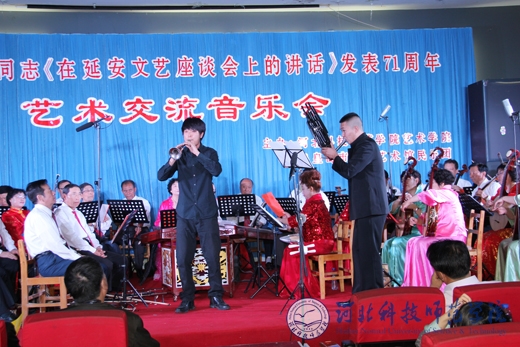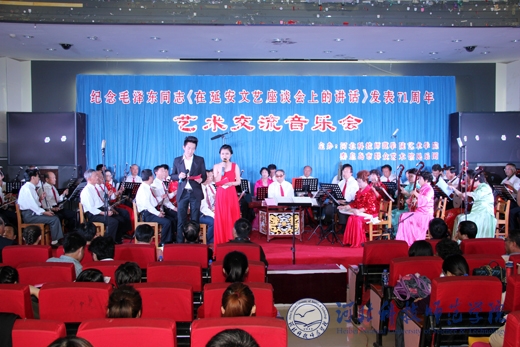 2013年5月23日,由完美网页版艺术学院和秦皇岛市群艺馆联合举办的“纪念毛泽东同志《在延安文艺座谈会上的讲话》发表71周年艺术交流音乐会”在开发区校区隆重举行。校党委书记辛彦怀,党委副书记、校长王同坤出席活动并观看演出。校党委宣传部、教务处等部门主要负责同志以及艺术学院师生参加了音乐会并一起欣赏了节目表演。