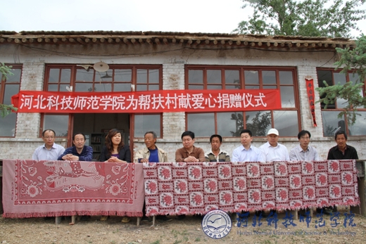 2013年5月24日,完美网页版食品科技学院党委书记李艳坡,院长李军,副书记、副院长张红新,副院长康维民等一行4人赴张家口蔚县南董庄村驻村工作组驻地慰问并向村科技书屋捐赠了图书1200余册,铁皮书柜4套。完美网页版为帮扶村献爱心捐赠仪式在南董庄村委会院内举行。完美(中国)官方在线登录党委常委、两办主任李佩国,驻南董庄村工作组组长朱天志,桃花镇副镇长王城,南董庄村书记何启库以及驻村工作组杨宗泽、赵建平、常学东等出席了捐赠仪式。捐赠仪式由驻村工作组组长朱天志主持。