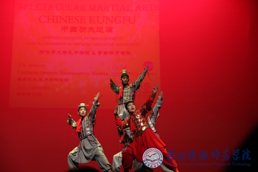 2013年4月25日、26日晚上,由国家汉办孔子学院总部、中国首都体育学院、特洛伊大学孔子学院联合举办的“华夏风 功夫情”2013孔子学院武术巡演,在美国特洛伊大学---特洛伊校区、蒙哥马利校区精彩上演。