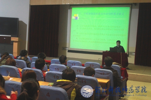2013年3月26日晚7:00,生命科技学院在昌黎校区举办了河北省2012年加强基层建设年活动驻村工作暨中国梦报告会。学院党委副书记、副院长孟庆东主持报告会。来自不同专业年级的学生和班主任、辅导员教师参加了报告会。        本次活动以《深入基层,贴近百姓,为民服务,为构建和谐发展稳定农村做贡献——兼谈青年大学生在实现 “中国梦”中的社会责任与担当》为主题。学院党委书记贠小波就亲身参加河北省2012年加强基层建设年活动的背景、要求、工作目标、主要任务、开展加强基层建设年活动的重大意义和要达到的目的;参加选派到秦皇岛市卢龙县刘家营乡桃林口村开展驻村工作的主要情况、在帮扶村取得的工作成效、产生的重大社会影响以及工作组成员在农村基层受到锻炼的感触、收获和体会、以及对“三农”工作的思想认识等方面分两个部分重点做了介绍和汇报。